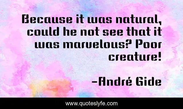 This page presents the quote "Because it was natural, could he not see that it was marvelous? Poor creature!". Author of this quote is André Gide. This quote is about natural-revelation, worship,.