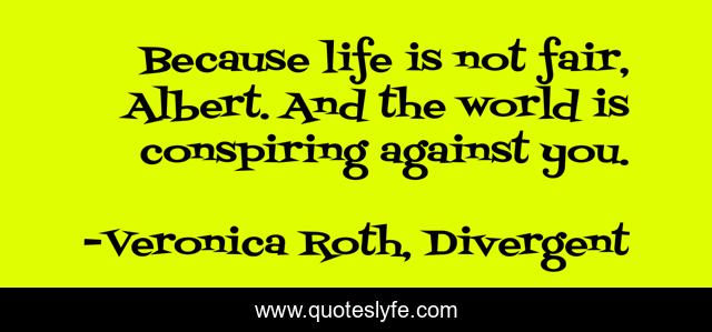 This page presents the quote "Because life is not fair, Albert. And the world is conspiring against you.". Author of this quote is Veronica Roth, Divergent. .