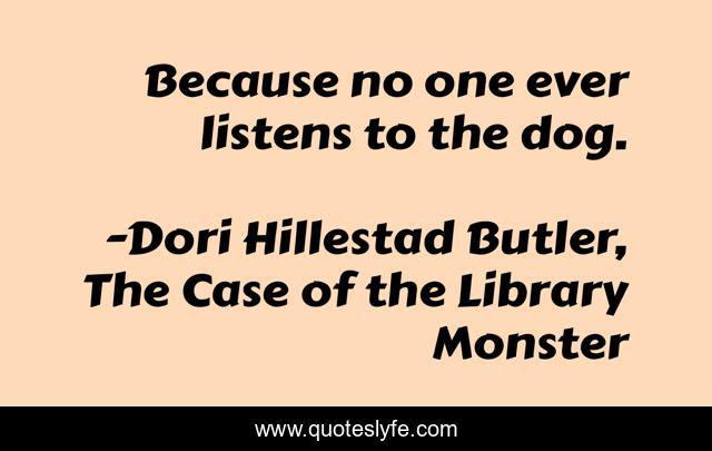 This page presents the quote "Because no one ever listens to the dog.". Author of this quote is Dori Hillestad Butler, The Case of the Library Monster. .