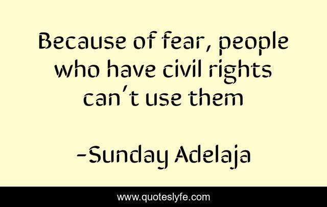 This page presents the quote "Because of fear, people who have civil rights can’t use them". Author of this quote is Sunday Adelaja. This quote is about civil, fear, people, use, rights,.