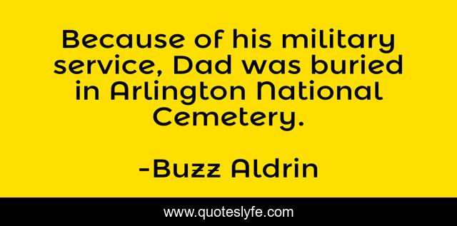 This page presents the quote "Because of his military service, Dad was buried in Arlington National Cemetery.". Author of this quote is Buzz Aldrin. This quote is about military, cemetery, service,.