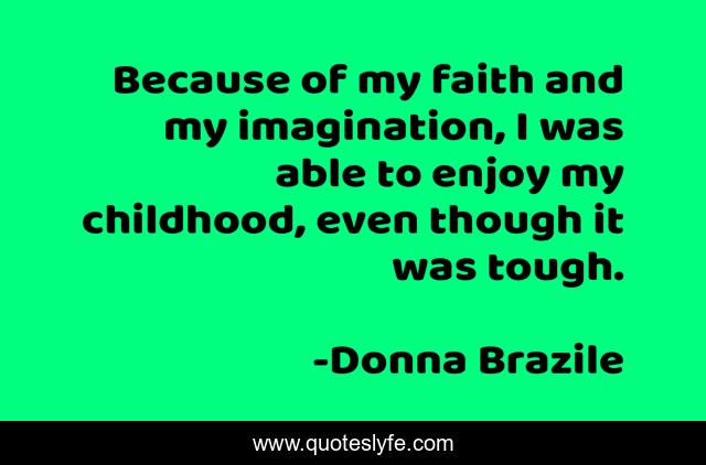This page presents the quote "Because of my faith and my imagination, I was able to enjoy my childhood, even though it was tough.". Author of this quote is Donna Brazile. This quote is about enjoy, faith, childhood,.