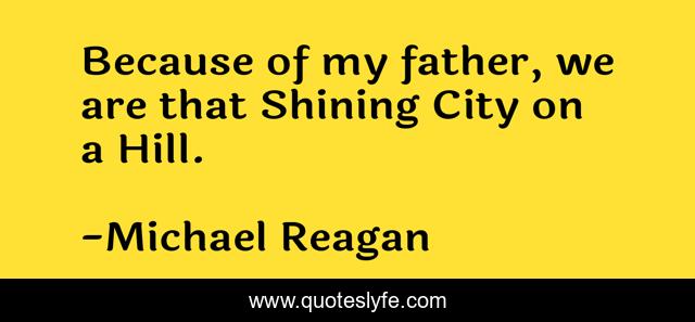 This page presents the quote "Because of my father, we are that Shining City on a Hill.". Author of this quote is Michael Reagan. This quote is about city, father, hill,.