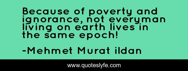 This page presents the quote "Because of poverty and ignorance, not everyman living on earth lives in the same epoch!". Author of this quote is Mehmet Murat ildan. This quote is about murat-ildan, ignorance, epoch, poverty, era, earth,.