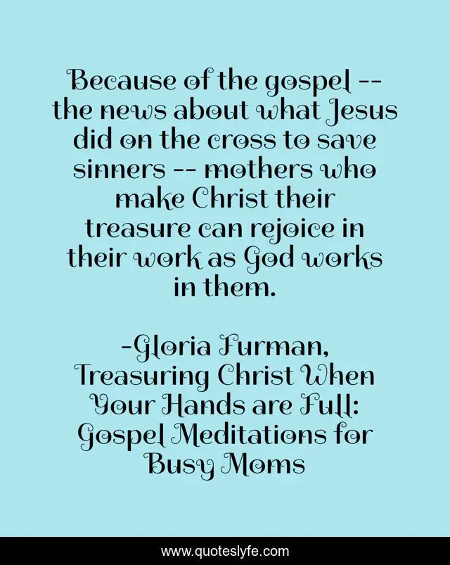"Gloria Furman, Treasuring Christ When Your Hands are Full: Gospel Meditations for Busy Moms Quotes." Quoteslyfe.com, 2025. Sat. 06 Dec. 2025. <https://www.quoteslyfe.com/quote/Because-of-the-gospel-the-news-about-100045>.