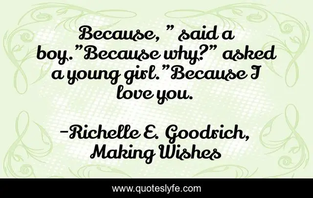 "Richelle E. Goodrich, Making Wishes Quotes." Quoteslyfe.com, 2025. Fri. 05 Dec. 2025. <https://www.quoteslyfe.com/quote/Because-said-a-boy-Because-why-asked-189428>.