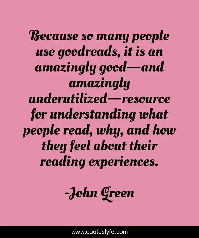 "John Green Quotes." Quoteslyfe.com, 2025. Mon. 08 Dec. 2025. <https://www.quoteslyfe.com/quote/Because-so-many-people-use-goodreads-it-196754>.