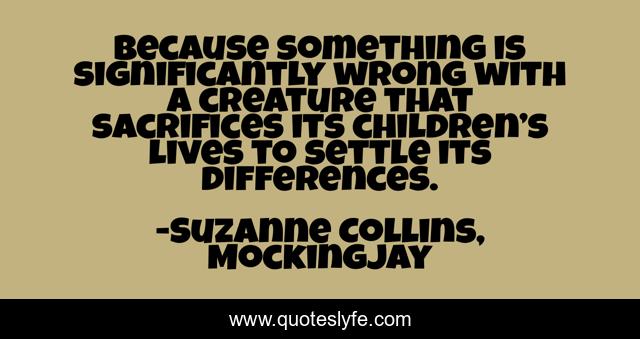 This page presents the quote "Because something is significantly wrong with a creature that sacrifices its children’s lives to settle its differences.". Author of this quote is Suzanne Collins, Mockingjay. .