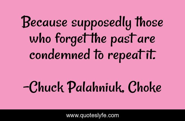 This page presents the quote "Because supposedly those who forget the past are condemned to repeat it.". Author of this quote is Chuck Palahniuk, Choke. .