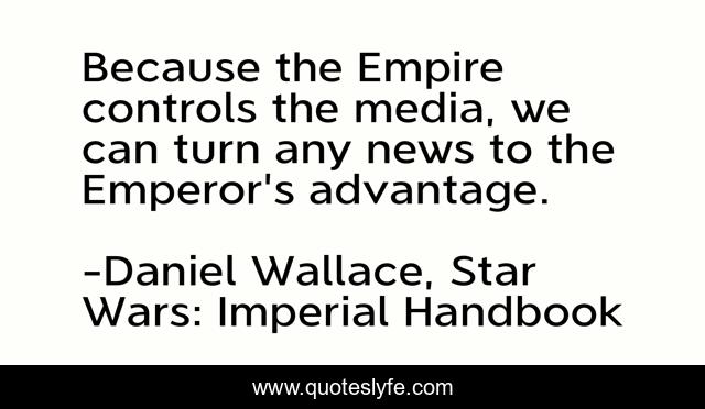 "Daniel Wallace, Star Wars: Imperial Handbook Quotes." Quoteslyfe.com, 2025. Sun. 07 Dec. 2025. <https://www.quoteslyfe.com/quote/Because-the-Empire-controls-the-media-we-233599>.