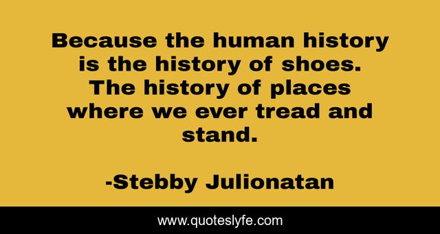 This page presents the quote "Because the human history is the history of shoes. The history of places where we ever tread and stand.". Author of this quote is Stebby Julionatan. This quote is about history, shoes, tread, human, stand,.