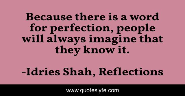 This page presents the quote "Because there is a word for perfection, people will always imagine that they know it.". Author of this quote is Idries Shah, Reflections. This quote is about imagination, real-knowledge, perfection, illusion,.