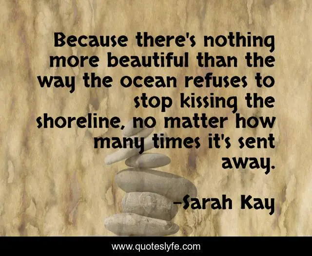 This page presents the quote "Because there's nothing more beautiful than the way the ocean refuses to stop kissing the shoreline, no matter how many times it's sent away.". Author of this quote is Sarah Kay. This quote is about sarah-kay, shoreline, kiss, ocean,.