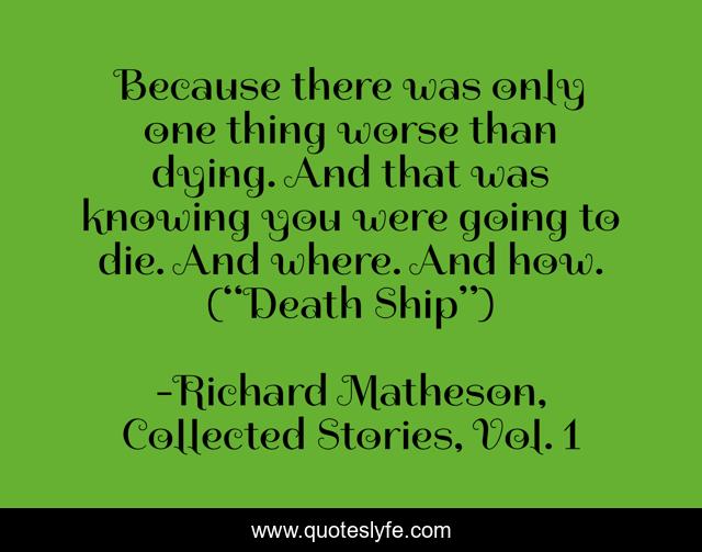 "Richard Matheson, Collected Stories, Vol. 1 Quotes." Quoteslyfe.com, 2025. Sat. 06 Dec. 2025. <https://www.quoteslyfe.com/quote/Because-there-was-only-one-thing-worse-21604>.
