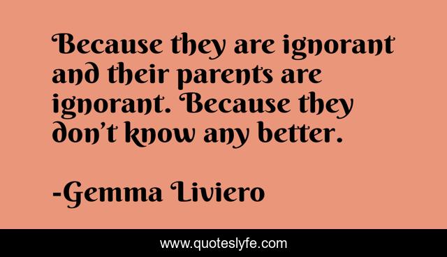 "Gemma Liviero Quotes." Quoteslyfe.com, 2025. Fri. 05 Dec. 2025. <https://www.quoteslyfe.com/quote/Because-they-are-ignorant-and-their-parents-99665>.