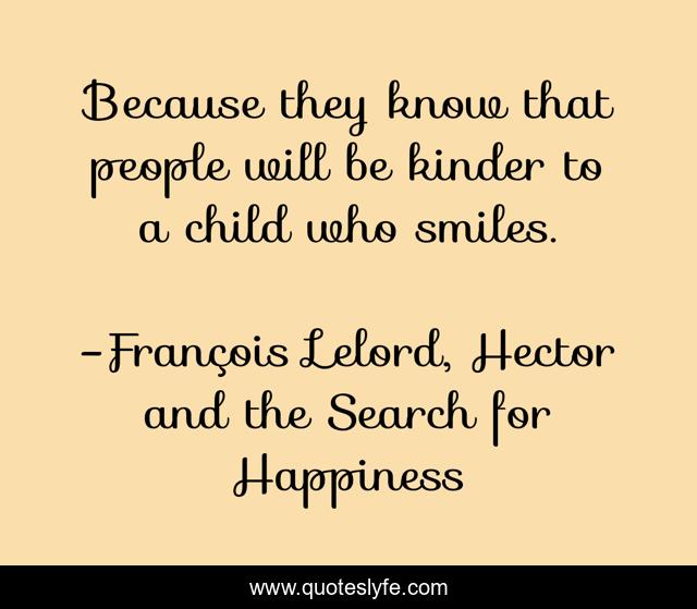 This page presents the quote "Because they know that people will be kinder to a child who smiles.". Author of this quote is François Lelord, Hector and the Search for Happiness. This quote is about smile, kindness, children, happiness,.