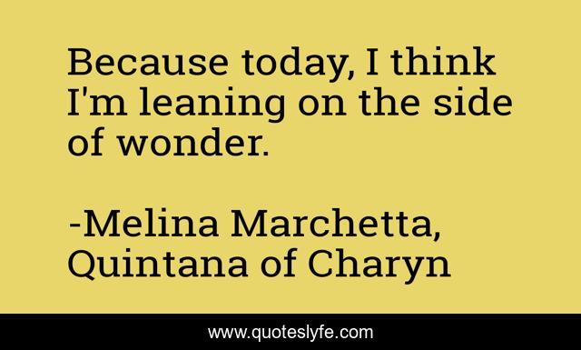 This page presents the quote "Because today, I think I'm leaning on the side of wonder.". Author of this quote is Melina Marchetta, Quintana of Charyn. This quote is about froi, wonder,.