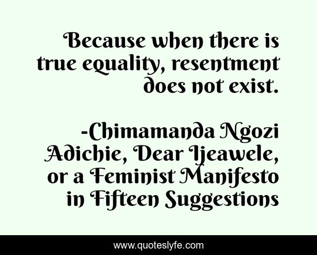 "Chimamanda Ngozi Adichie, Dear Ijeawele, or a Feminist Manifesto in Fifteen Suggestions Quotes." Quoteslyfe.com, 2025. Fri. 05 Dec. 2025. <https://www.quoteslyfe.com/quote/Because-when-there-is-true-equality-resentment-101483>.