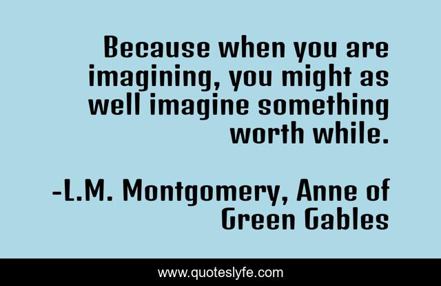 This page presents the quote "Because when you are imagining, you might as well imagine something worth while.". Author of this quote is L.M. Montgomery, Anne of Green Gables. .