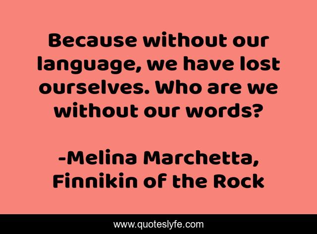 "Melina Marchetta, Finnikin of the Rock Quotes." Quoteslyfe.com, 2025. Sat. 06 Dec. 2025. <https://www.quoteslyfe.com/quote/Because-without-our-language-we-have-lost-158949>.