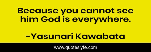 This page presents the quote "Because you cannot see him God is everywhere.". Author of this quote is Yasunari Kawabata. This quote is about faith, belief,.