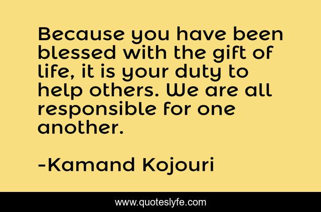 Because you have been blessed with the gift of life, it is your duty to help others. We are all responsible for one another.