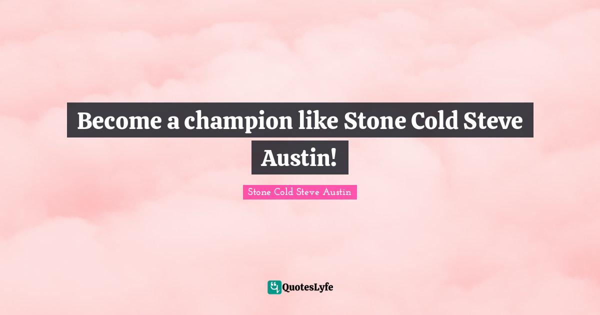 This page presents the quote "Become a champion like Stone Cold Steve Austin!". Author of this quote is Stone Cold Steve Austin. This quote is about wwe, champion, stone cold steve austin, austin,.
