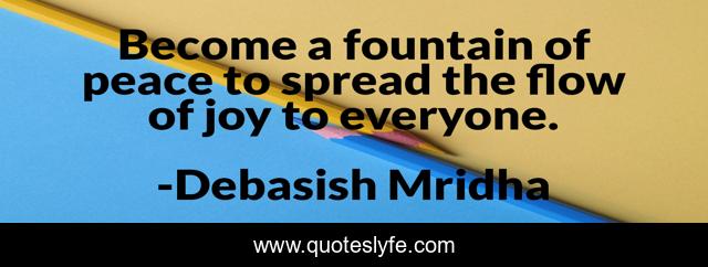This page presents the quote "Become a fountain of peace to spread the flow of joy to everyone.". Author of this quote is Debasish Mridha. This quote is about fountain-of-peace, peace, joy, philosophy, debasish-mridha, quotes, debasish-mridha-md, inspirational, enthusiasm,.