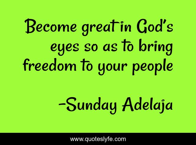 This page presents the quote "Become great in God’s eyes so as to bring freedom to your people". Author of this quote is Sunday Adelaja. This quote is about great, people, freedom, bring, national-transformation, god-s-eyes,.