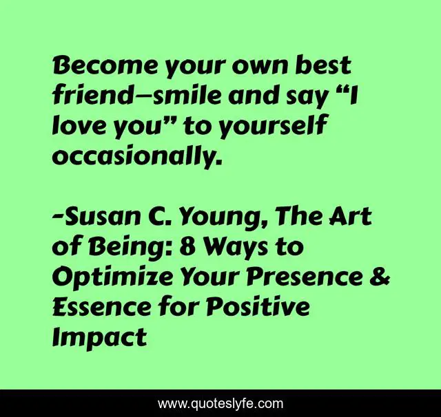 "Susan C. Young, The Art of Being: 8 Ways to Optimize Your Presence & Essence for Positive Impact Quotes." Quoteslyfe.com, 2025. Sun. 07 Dec. 2025. <https://www.quoteslyfe.com/quote/Become-your-own-best-friend-smile-and-142607>.