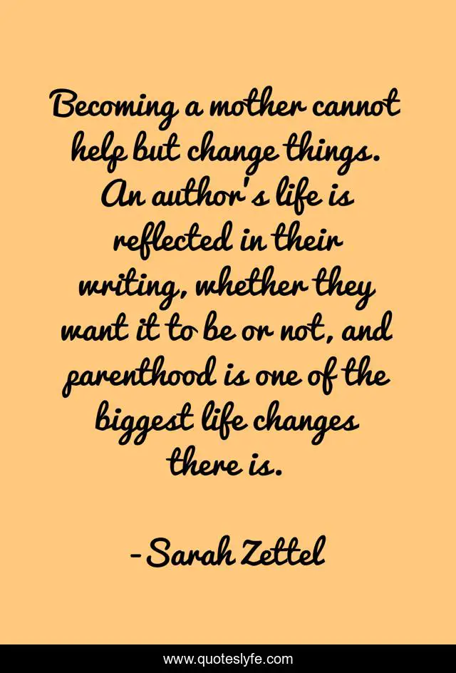 This page presents the quote "Becoming a mother cannot help but change things. An author's life is reflected in their writing, whether they want it to be or not, and parenthood is one of the biggest life changes there is.". Author of this quote is Sarah Zettel. This quote is about life, changes, mother,.