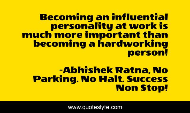 "Abhishek Ratna, No Parking. No Halt. Success Non Stop! Quotes." Quoteslyfe.com, 2025. Mon. 08 Dec. 2025. <https://www.quoteslyfe.com/quote/Becoming-an-influential-personality-at-work-is-109128>.