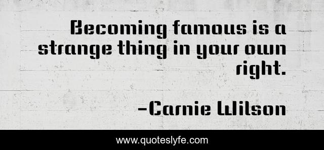 This page presents the quote "Becoming famous is a strange thing in your own right.". Author of this quote is Carnie Wilson. This quote is about own, right, strange,.