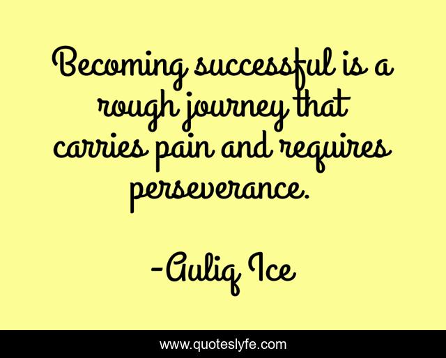 This page presents the quote "Becoming successful is a rough journey that carries pain and requires perseverance.". Author of this quote is Auliq Ice. .