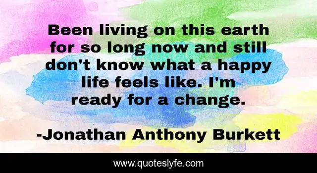This page presents the quote "Been living on this earth for so long now and still don't know what a happy life feels like. I'm ready for a change.". Author of this quote is Jonathan Anthony Burkett. This quote is about life, love, money, soul, earth, change, barack-obama, determination, 2013,.