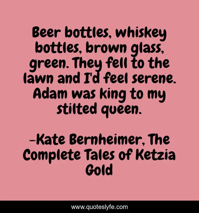 "Kate Bernheimer, The Complete Tales of Ketzia Gold Quotes." Quoteslyfe.com, 2025. Mon. 08 Dec. 2025. <https://www.quoteslyfe.com/quote/Beer-bottles-whiskey-bottles-brown-glass-green-204524>.