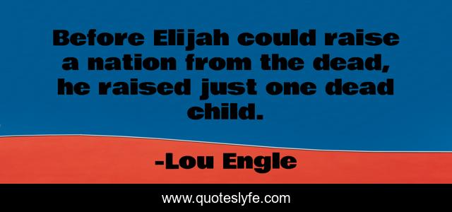 This page presents the quote "Before Elijah could raise a nation from the dead, he raised just one dead child.". Author of this quote is Lou Engle. This quote is about child, dead, nation,.