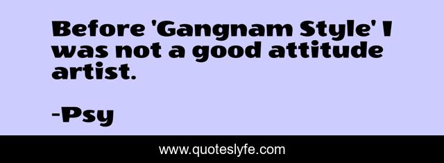 This page presents the quote "Before 'Gangnam Style' I was not a good attitude artist.". Author of this quote is Psy. This quote is about style, good, artist,.
