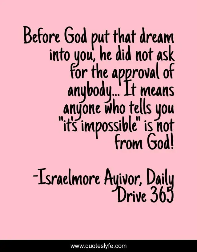 "Israelmore Ayivor, Daily Drive 365 Quotes." Quoteslyfe.com, 2025. Mon. 08 Dec. 2025. <https://www.quoteslyfe.com/quote/Before-God-put-that-dream-into-you-129285>.
