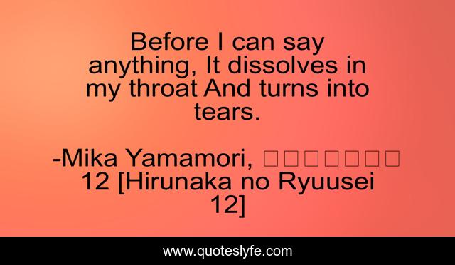 This page presents the quote "Before I can say anything, It dissolves in my throat And turns into tears.". Author of this quote is Mika Yamamori, ひるなかの流星 12 [Hirunaka no Ryuusei 12]. .