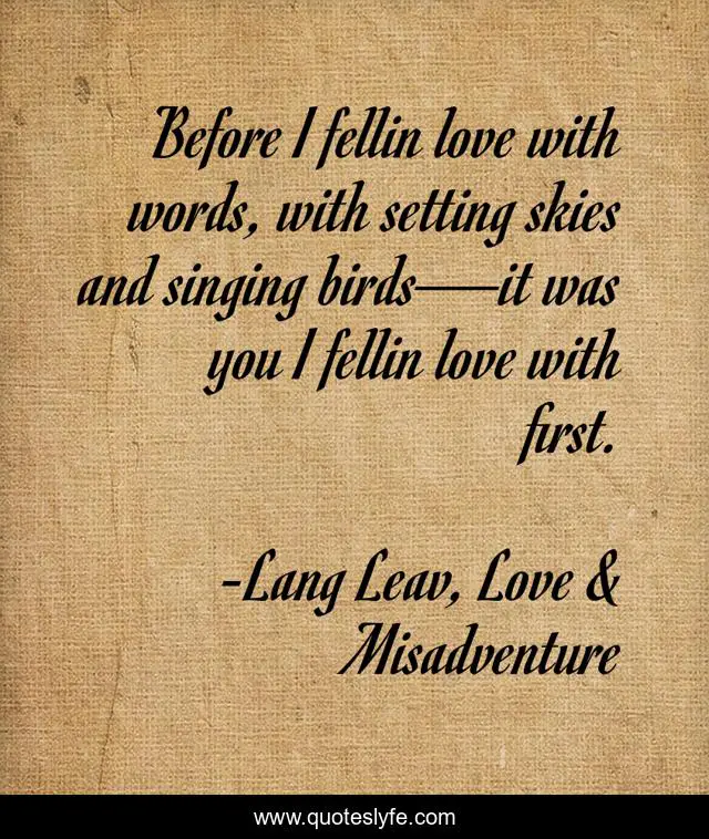 This page presents the quote "Before I fellin love with words, with setting skies and singing birds—it was you I fellin love with first.". Author of this quote is Lang Leav, Love & Misadventure. This quote is about romance, love, affection,.