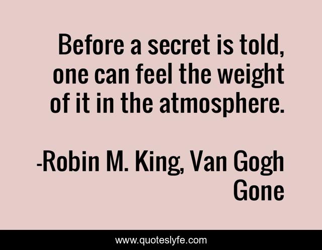 "Robin M. King, Van Gogh Gone Quotes." Quoteslyfe.com, 2025. Sun. 07 Dec. 2025. <https://www.quoteslyfe.com/quote/Before-a-secret-is-told-one-can-167398>.