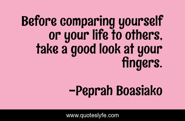 This page presents the quote "Before comparing yourself or your life to others, take a good look at your fingers.". Author of this quote is Peprah Boasiako. This quote is about life, life-and-living, life-lessons,.