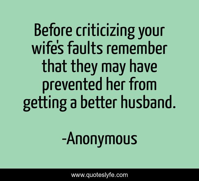 "Anonymous Quotes." Quoteslyfe.com, 2025. Sat. 06 Dec. 2025. <https://www.quoteslyfe.com/quote/Before-criticizing-your-wife-s-faults-remember-270081>.
