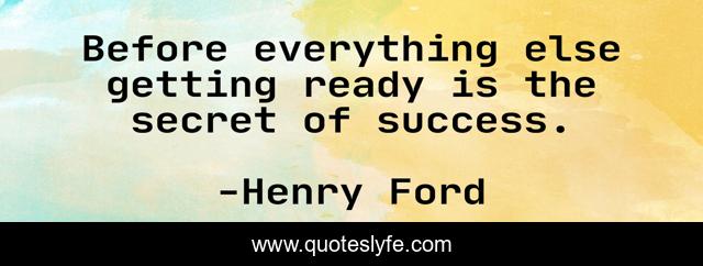 This page presents the quote "Before everything else getting ready is the secret of success.". Author of this quote is Henry Ford. .