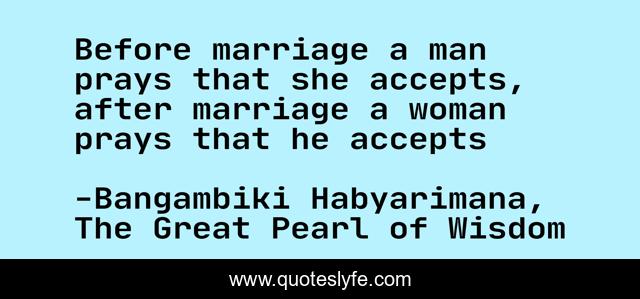 "Bangambiki Habyarimana, The Great Pearl of Wisdom Quotes." Quoteslyfe.com, 2025. Mon. 08 Dec. 2025. <https://www.quoteslyfe.com/quote/Before-marriage-a-man-prays-that-she-77313>.