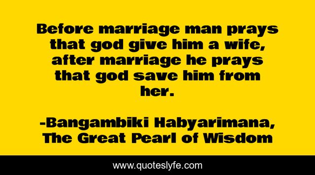 "Bangambiki Habyarimana, The Great Pearl of Wisdom Quotes." Quoteslyfe.com, 2025. Mon. 08 Dec. 2025. <https://www.quoteslyfe.com/quote/Before-marriage-man-prays-that-god-give-77316>.
