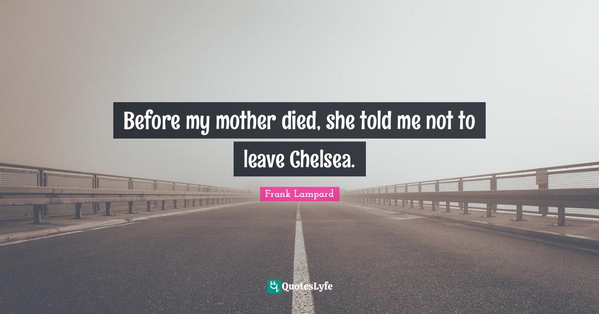 This page presents the quote "Before my mother died, she told me not to leave Chelsea.". Author of this quote is Frank Lampard. This quote is about chelsea, mother, died, mother died,.