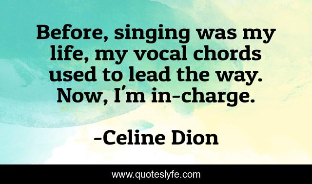 This page presents the quote "Before, singing was my life, my vocal chords used to lead the way. Now, I'm in-charge.". Author of this quote is Celine Dion. This quote is about maturity, matured,.