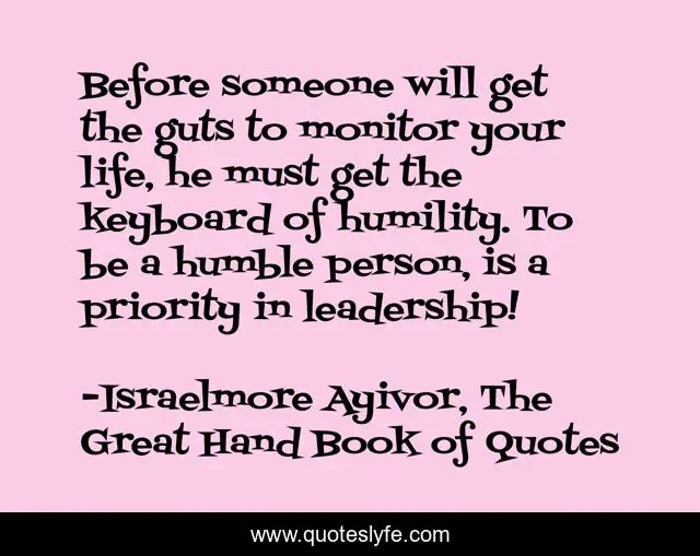 Before someone will get the guts to monitor your life, he must get the keyboard of humility. To be a humble person, is a priority in leadership!